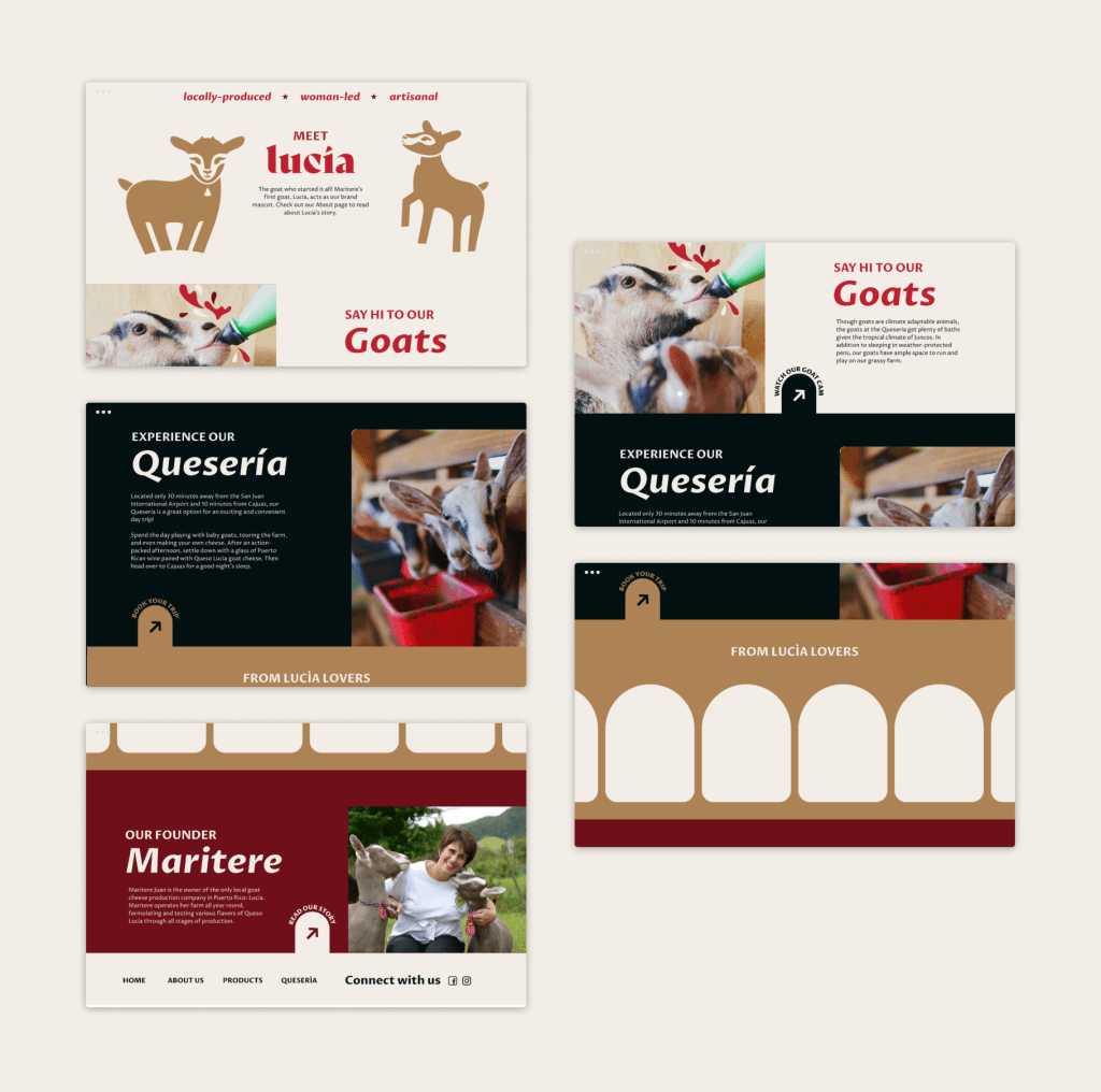 Brand identity and digital presence for Lucía, a woman-owned goat cheese company with a farm open to the public in Juncos, PR. In collaboration with Karuna Gangwani, Lindsay Caslin, Kailyn Byers, and Ann Salman.