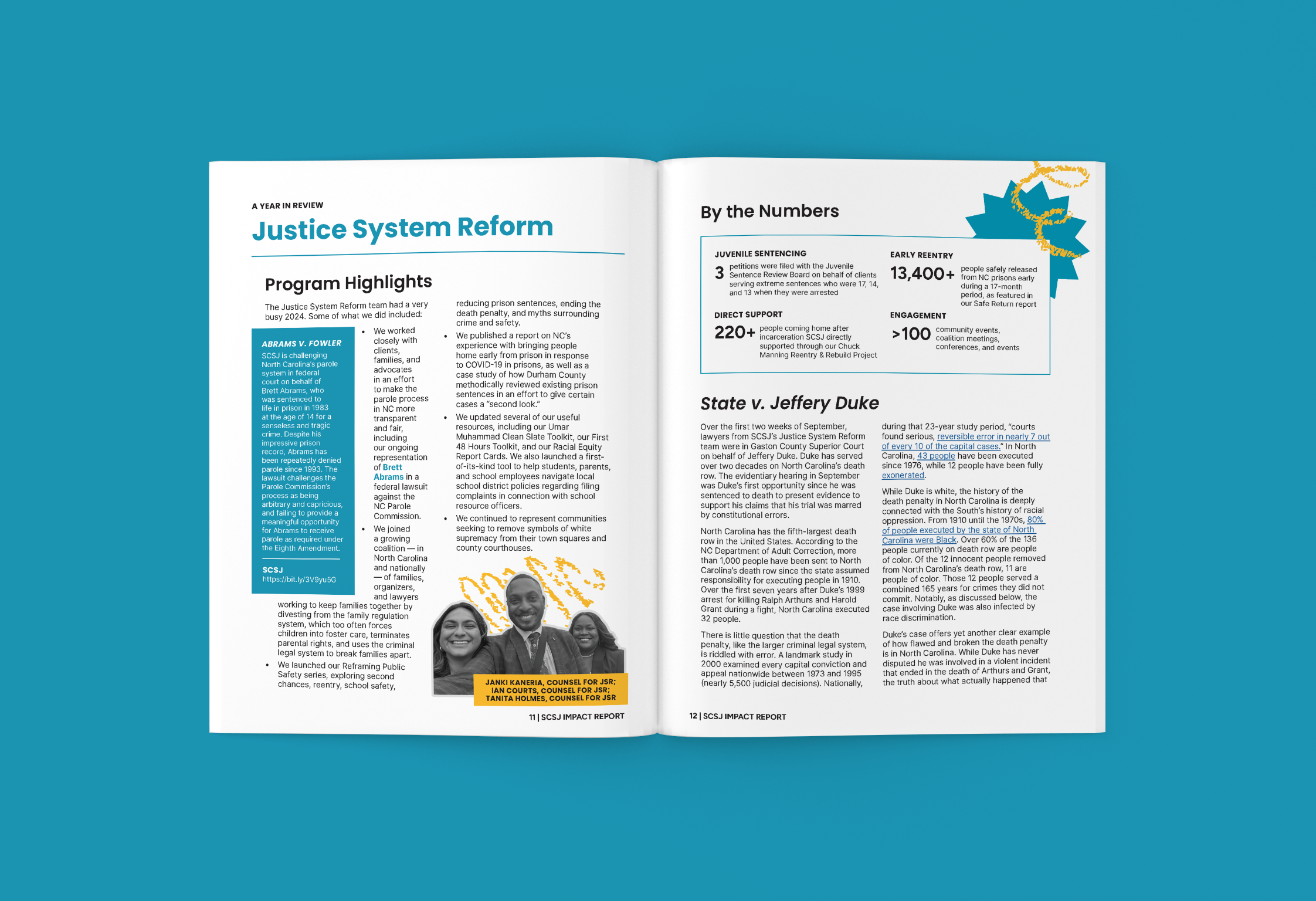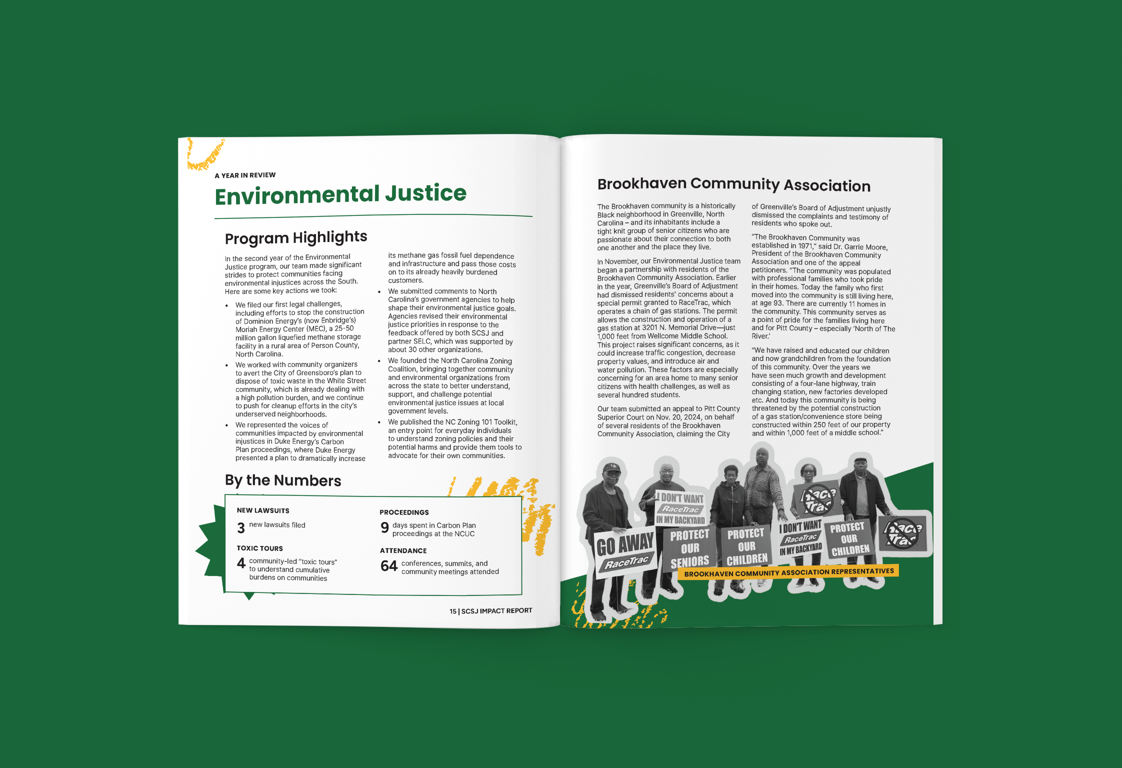 The 2024 Southern Coalition for Social Justice (SCSJ) Impact Report highlights transformative work in voting rights, environmental justice, and justice system reform: from operating a non-partisan Election Protection hotline, to expanding access to zoning resources and representing wrongfully incarcerated individuals.